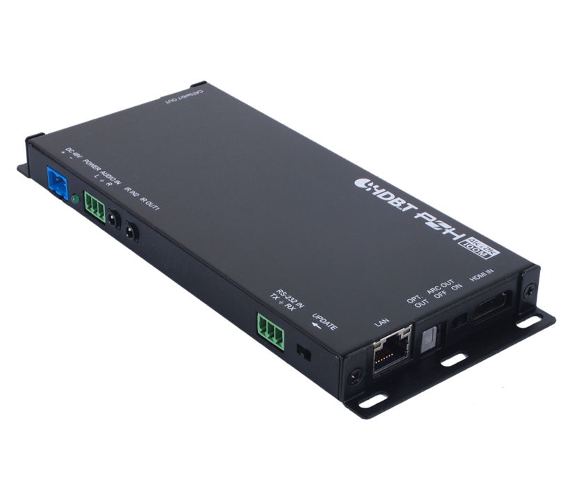 Dieses Set aus HDBaseT 2.0-Sender und -Empfänger kann unkomprimiertes UHD-Video und -Audio über ein einziges Cat.5e/6/7-Kabel bis zu 100 m weit übertragen. Es hat den zusätzlichen Vorteil, Steuerungs- und Kommunikationssignale über die integrierten Ethernet-, RS-232- und IR-Anschlüsse zu übertragen. Unabhängige externe digitale und analoge Audioübertragungsmöglichkeiten bieten dem Benutzer den zusätzlichen Komfort zusätzlicher Audioverbindungen.