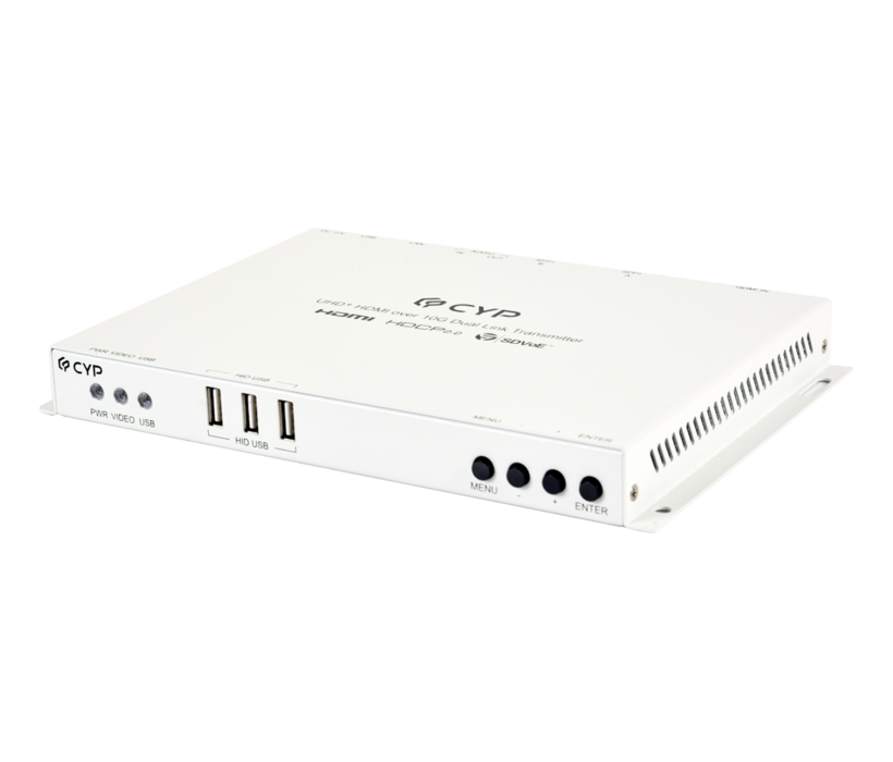 Das Gerät ist flexibel und kann mit verschiedenen Verbindungsmodi betrieben werden, um die Anforderungen der Umgebung zu erfüllen. Dual-Link-Sender und -Empfänger können 4K60 unkomprimierte Signale gleichzeitig sowohl im Sender- als auch im Empfängermodus übertragen. 2-Wege-Live-Chat mit niedriger Latenz ist möglich. Nahtloser Übergang zwischen zwei Quellen mit gleicher Auflösung im Fast-Switch-Modus, mit nur 3 Frames schwarz beim Übergang zwischen 2 Quellen mit unterschiedlichen Auflösungen.Full Suite von Peripheriegeräten unterstützt, einschließlich 1G Ethernet, RS232 und HID USB. Unterstützt alle HDMI 2.0-Formate, einschließlich Mehrkanal-PCM, Dolby True HD und DTS HD Master Audio.