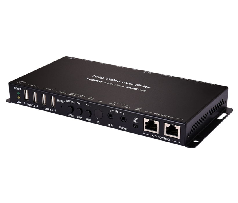 Dieses Gerät ist Teil eines 4K-UHD-Multifunktions-Verlängerungssystems, mit dem Sie HDMI- oder VGA-Signale zusammen mit KVM unter Verwendung des TCP/IP-Protokolls über normale Cat.5e/6/7-Netzwerkkabel verlängern können. Dieser Extender unterstützt die Übertragung von Ultra High-Definition Signalen (bis zu 4K@30Hz YUV 4:4:4 oder 4K@60Hz YUV 4:2:0) mit Audio und USB bis zu 100m auf einem einzigen Kabel. Die Übertragungsdistanz kann durch den Einsatz von Gigabit-Netzwerk-Switches noch weiter verlängert werden (bis zu 100 m pro Segment), so dass der Benutzer das System ohne Signalverlust oder Verzögerung kaskadieren kann. Mit dem CH-U353RX können Sie auch ein einziges AV-Signal an eine große Anzahl von Empfängern innerhalb desselben lokalen Netzwerks senden. Darüber hinaus kann dasselbe Multicast-Signal verwendet werden, um mit verblüffender Einfachheit große Multi-Display-Videowände zu erstellen. Dieses System ist sowohl für private als auch für kommerzielle Installationen geeignet.
