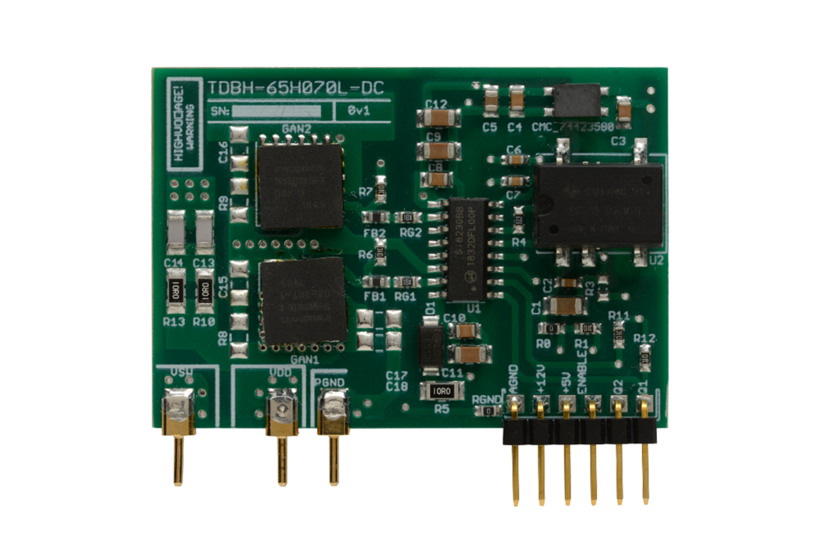• Daughter board with GaN fets as half bridge equipped with TP65H070L GaN FETs
