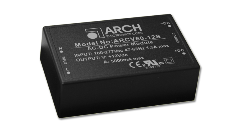 Arch's product range includes power supplies from 2 to 700 W. These include AC/DC modules (2...150 W) for soldering into a PCB and switching power supplies (60...700 W).