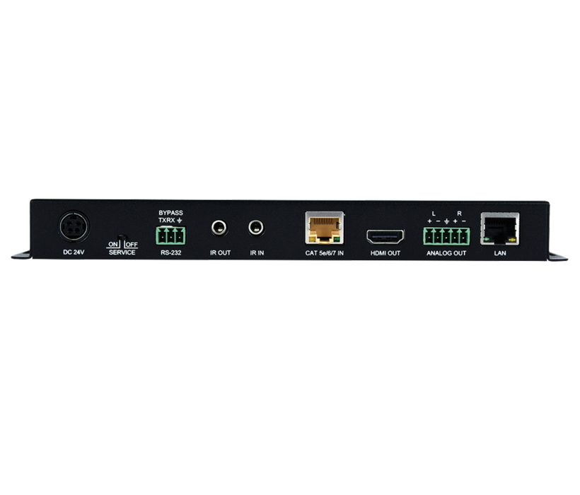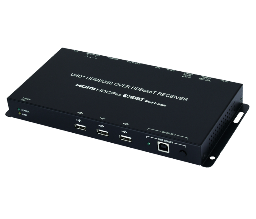 CH-2606RX adopts HDBaseT 2.0 technology for extending uncompressed 4k and HD video, audio, Ethernet, control and power along a single Cate 5e/6/7 cable up to 100 meters. When paired with this unit’s standard Transmitter, 2 switchable USB 2.0 host (Type B) connections are available (1 on the Transmitter, 1 on the Receiver) which can connect to devices on up to 6 USB 2.0 (Type A) ports (3 on the Transmitter, 3 on the Receiver) forming a highly flexible KVM extension configuration (Note: Only 1 USB host may be active at a time). This Receiver (PSE) can provide PoH (Power over HDBaseT) power to the connected HDBaseT Transmitter (PD) (compatible Transmitters only), This unit is controllable via front panel button.