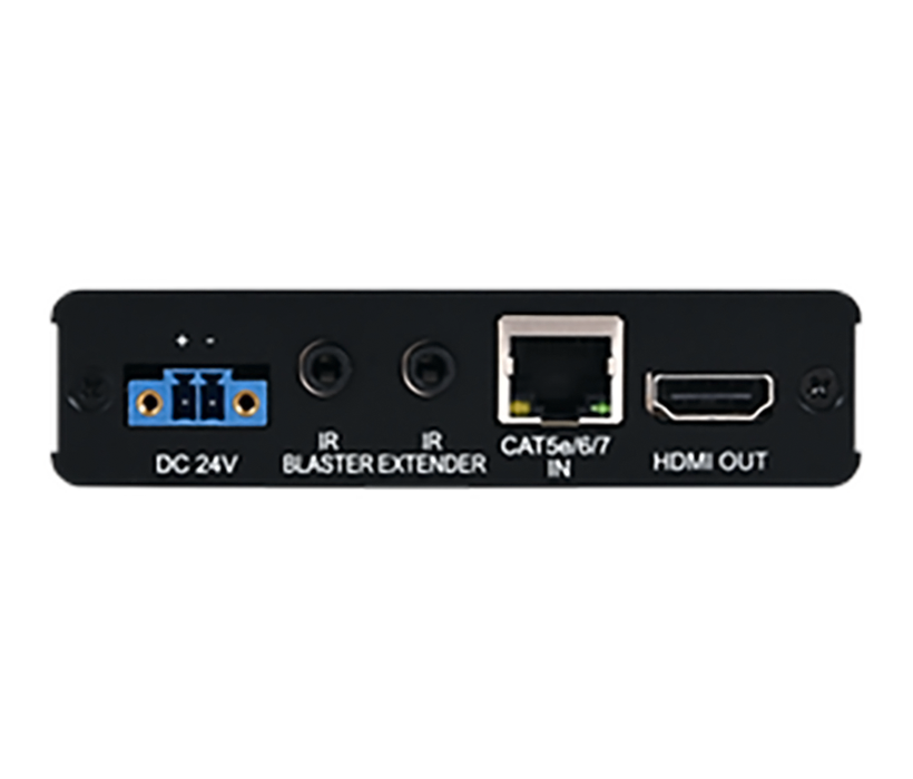 This HDMI over HDBaseT Receiver is a great solution for extending UHD video and audio as well as Ethernet and control via a single run of Cat.5e/6/7 cable over distances up to 70 meters. This extender complies with the advanced HDCP 2.2 and HDMI 2.0 standards, as well as supporting the legacy HDCP 1.x and HDMI 1.x standards. In addition, despite HDBaseT’s 10.2Gbps bandwidth limitation, 4K UHD HDMI video sources, up to and including 4K@60Hz (4:4:4, 8-bit) as well as 10/12-bit sources with HDR, are able to be processed and extended by the use of AVLC (Adaptive Visually Lossless Compression) when needed. Multiple data and control interfaces are also able to be extended, including IR, RS-232, and LAN connections.