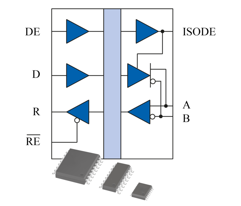 kostenoptimierter Transceiver Hohe Übertragungsrate von 4 MBit/s sehr stromsparend mit typ. 9mA Ruhestrom Isolationsfestigkeit von 2500Veff (1 min) QSOP-16, 0,15"-SOIC-16 und 0,3"-SOIC-16-Gehäuse 50 kV/µs Transientenfestigkeit VDE 0884-11 pending; UL1577 recognized Sehr geringe Störstrahlung 44000 Jahre Lebensdauer der Isolierschicht
