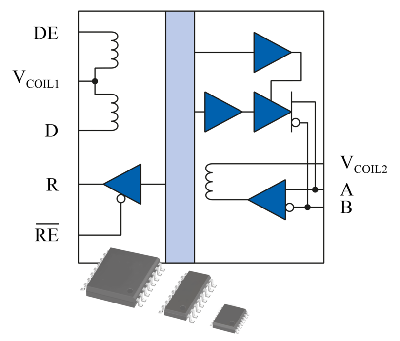 Unter dem Markennamen IsoLoop hat NVE mehrere Serien von Kopplern und Transceivern für die schnelle Datenübertragung auf magnetischer Basis entwickelt.