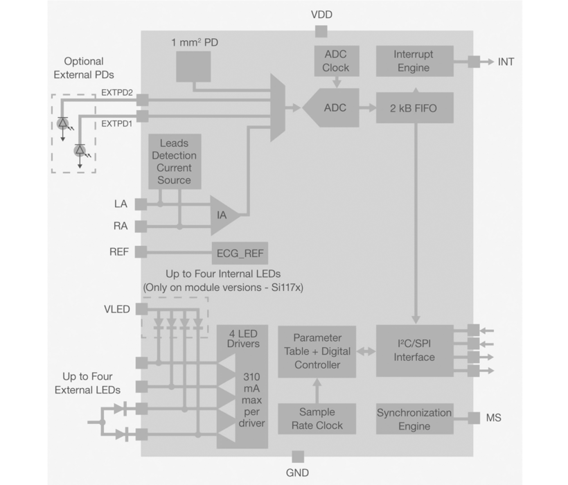 • Vollständig integriertes Herzfrequenzmodul-IC