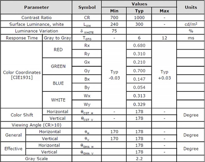Kriterien sind z.B. Großer Ablesewinkel, weiter Farbraum, hoher Kontrast, kalibrierbarkeit des medizinischen Monitors und lange Lebensdauer. Die optische Spezifikation ist der Ausgangspunkt für die Auswahl.