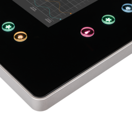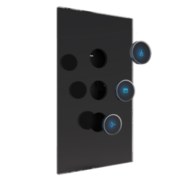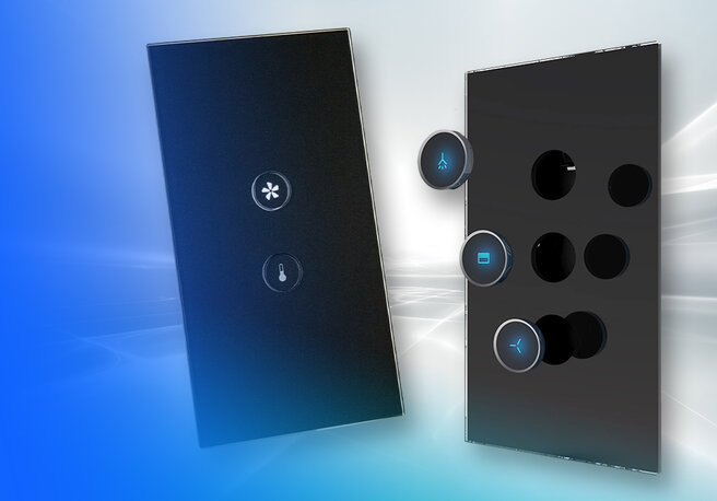 Der Glasbutton ermöglicht ein oberflächen-bündiges Design in einer Glasoberfläche. Das Bedienteil ist aus dem gleichen Material wie der Rest der Oberfläche und fügt sich nahtlos ein. Die Bedruckung mit Symbolen kann frei gewählt werden.