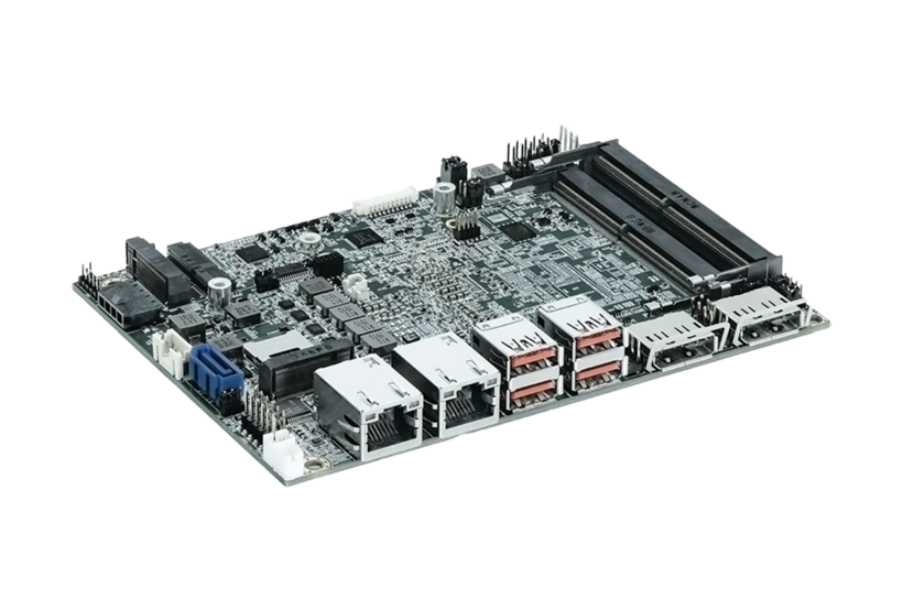 Mehr vernetzte Plattform für IoT-Anwendungen: 3,5"-SBC-WLU ist ein 3,5" Single-Board-Computer auf Basis von Intel Whiskey Lake U-Series Prozessoren. Neben der Verbesserung der Rechen-/Grafikleistung unterstützt das Board viele Schnittstellen der neuesten Generation, darunter (1) schnellere DDR4-Speichersockel, (2) HDMI-/DVI-Ausgangsports mit Unterstützung für DP++, (3) Hochgeschwindigkeits-SATA 3.0-Laufwerkssockel und (4) hochintegrierte M.2-Erweiterungssteckplätze.