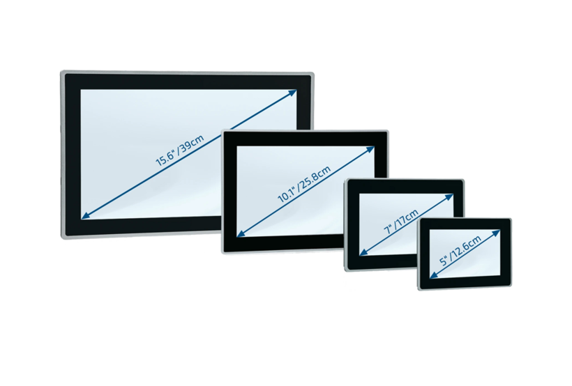 Die Control Panel zeichnen sich durch ein attraktives Design, IPS-Displays mit hoher Auflösung in 7", 10,1" und 15,6", Helligkeit und kapazitiver Multitouch-Technologie sowie ihre skalierbare Prozessorleistung basierend auf Single- oder Dual-Core Arm® NXP i.MX6 Prozessoren aus. Sie verfügen über einen robusten Touchscreen in einem Aluminium- oder Edelstahlrahmen und wurden speziell für den Einsatz in industriellen Umgebungen entwickelt. In der Standardausführung sind die Panel PCs für den Einbau in Schaltschränke oder Konsolen vorgesehen und sind frontseitig nach IP65 geschützt.