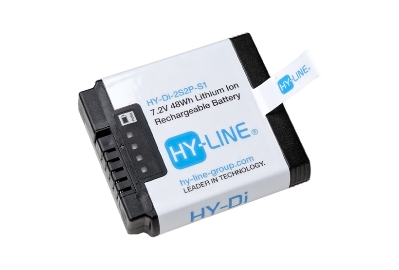 Die Smart Battery HY-Di-2S2P-S1 beinhaltet 4 Zellen vom Typ Panasonic NCR18650BF. Durch die 2S2P Konfiguration werden 7.2 VDC (nominal) und 48Wh Kapazität erreicht. Der maximale Entladestrom liegt bei 8.8 A. Über die Füllstandanzeige hat man einen schnellen Überblick bezüglich der Restkapazität. Der SM-Bus ermöglicht das Auslesen einer Vielzahl von Batterieparametern. Das Batterie-Management-System sichert das nach UN38.3 zertifizierte Batteriepack ab.