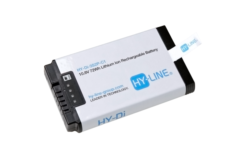Die Smart Battery HY-Di-2S3P-C1 beinhaltet 6 Zellen vom Typ Panasonic NCR18650BF. Durch die 2S3P Konfiguration werden 7.2 VDC (nominal) und 72Wh Kapazität erreicht. Der maximale Entladestrom liegt bei 8.8 A. Über die Füllstandanzeige hat man einen schnellen Überblick bezüglich der Restkapazität. Der CAN-Bus ermöglicht das Auslesen einer Vielzahl von Batterieparametern. Das Batterie-Management-System sichert das nach UN38.3 zertifizierte Batteriepack ab.