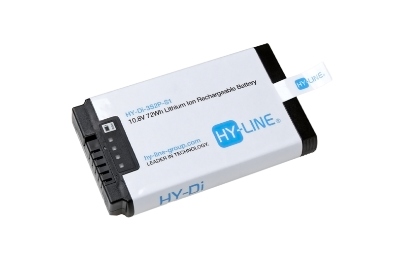 Die Smart Battery HY-Di-2S3P-S1 beinhaltet 6 Zellen vom Typ Panasonic NCR18650BF. Durch die 2S3P Konfiguration werden 7.2 VDC (nominal) und 72Wh Kapazität erreicht. Der maximale Entladestrom liegt bei 8.8 A. Über die Füllstandanzeige hat man einen schnellen Überblick bezüglich der Restkapazität. Der SM-Bus ermöglicht das Auslesen einer Vielzahl von Batterieparametern. Das Batterie-Management-System sichert das nach UN38.3 zertifizierte Batteriepack ab.