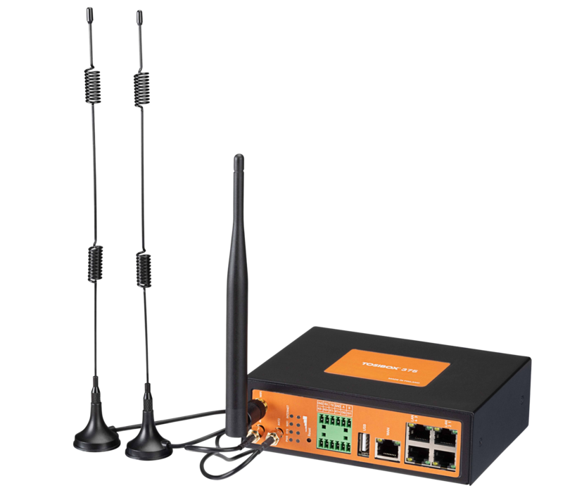TOSIBOX® 375 - Ihr Arbeitspferd für jede Branche. Wenn Sie in einem Unternehmen tätig sind, das eine kompakte All-in-One-Lösung benötigt, die fast überall auf der Welt eingesetzt werden kann, ist die TOSIBOX® 375 genau das Richtige für Sie! Mit der festen Ethernet-Schnittstelle, dem WiFi oder dem internen LTE-Modul, das durch externe Antennen ergänzt wird, können Sie einen stabilen Fernzugriff genießen, wo immer Sie sind. Es ist kein technisches Fachwissen erforderlich - einfach einstecken und loslegen!