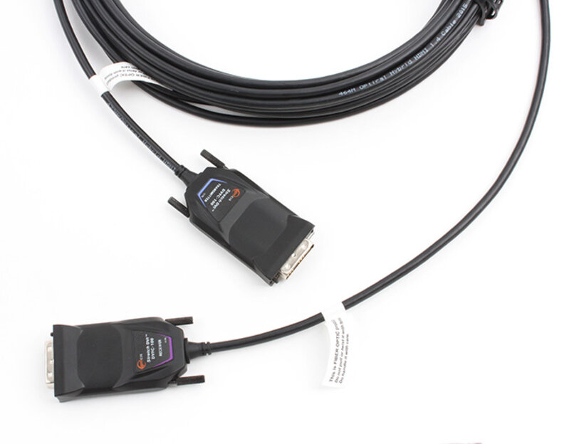 Das neue aktive optische DVI-Kabel DVFC-100 ist schlank, leicht und einfach wie ein Kupfer-DVI-Kabel zu installieren.  Es ermöglicht die Übertragung eines WUXGA-Signals (1920x1200) oder 1080p bei 60Hz (4K 30Hz) bis zu 150m via Hybrid-Kabel ohne Skalierung oder Datenkompression. Aufgrund seiner kompakten Form und dem niedrigen Stromverbrauch ist es ideal für den Einsatz in einer Vielzahl verschiedener Installationsumgebungen.