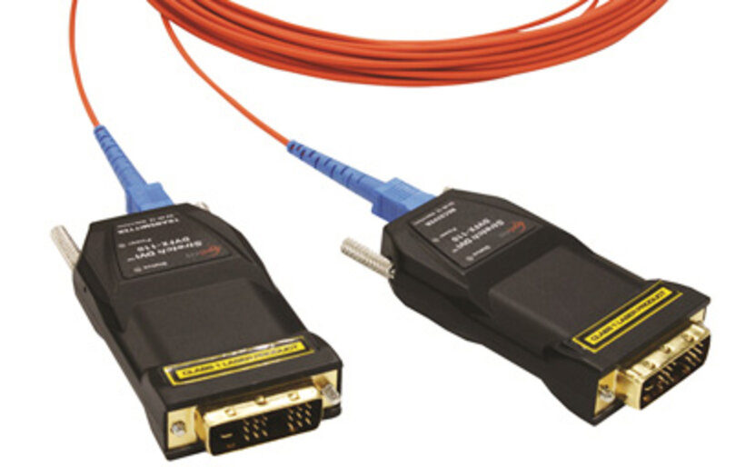 Das DVFX-110 überträgt Daten über eine einzige Glasfaserleitung mit SC-Stecker und kann mit Single-Mode bis zu 1500m bzw. Multi-Mode bis zu 500m betrieben werden. Die EDID-Daten werden über DDC aus einem lokalen, im Transmitter befindlichen EEPROM gelesen. Der Inhalt dieses EEPROMs wird durch die "Auto-Programmierung" bei der Inbetriebnahme einmalig aus dem Monitor ausgelesen. Die Größe der Module ist handlich, die rein optische Verbindung erlaubt eine galvanische Isolation zwischen Quelle und Display. Zwei AC/DC Adapter werden mitgeliefert, um je nach Verfügbarkeit der Versorgung flexibel zu sein.