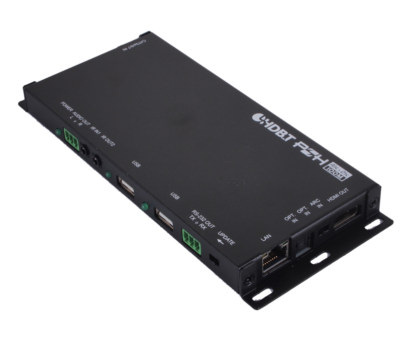Dieses Set aus HDBaseT 2.0-Sender und -Empfänger kann unkomprimiertes UHD-Video und -Audio über ein einziges Cat.5e/6/7-Kabel bis zu 100 m weit übertragen. Es hat den zusätzlichen Vorteil, Steuerungs- und Kommunikationssignale über die integrierten Ethernet-, USB-, RS-232- und IR-Anschlüsse zu übertragen. Unabhängige externe digitale und analoge Audioübertragungsmöglichkeiten bieten dem Benutzer den zusätzlichen Komfort von zusätzlichen Audioverbindungen. Dieses System unterstützt den Anschluss eines beliebigen Standard-USB-2.0-Hosts an den Sender und ermöglicht die Erweiterung der USB-Verbindung auf bis zu zwei USB-Ports am Empfänger, so dass dieser wie ein USB-Hub fungieren kann. Die integrierte 48V PoH (Power over HDBaseT)-Unterstützung versorgt den Empfänger (PD) über den Sender (PSE) mit Strom, wodurch eine separate Stromversorgung für den Empfänger überflüssig wird. Das ultradünne mechanische Design ermöglicht flexible Montageorte, spart Platz und sorgt für Ordnung in Ihrem Präsentationsraum.