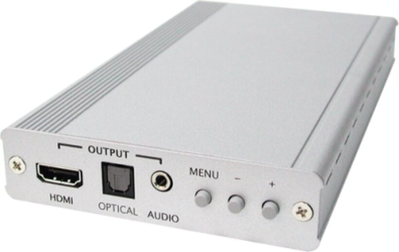 Diese Scaler Box ist darauf ausgelegt, analoge Videosignale von CV/SV-Eingangsquellen auf HDMI-Ausgabesignale zahlreicher HDTV- und PC-Auflösungen heraufzuskalieren (Upscaling). Neben Video-Upscaling bietet die Scaler Box außerdem die Konvertierung von digitalen/analogen Audiosignalen in digitale/analoge Formate, die über HDMI zusammen mit dem Videosignal und den Signalen über TOSLink (optischer Leiter) und die Lautsprecheranschlüsse (L/R-Audio) gleichzeitig ausgegeben werden. Dieses Gerät verfügt über ein umfangreiches OSD-Menü, mit dem Benutzer unter einer Vielzahl an Ausgangsauflösungen wählen und auf die beste Bildqualität einstellen können.