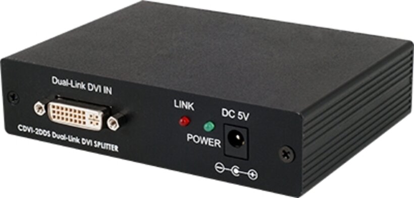Dieses Gerät ermöglicht es, ein DVI-Signal in zwei DVI-Ausgangssignale zu splitten. Unterstützt werden Single-Link und Dual-Link DVI-Signale mit einer Auflösung von WQXGA für Dual Link und WUXGA@RB für Single Link.