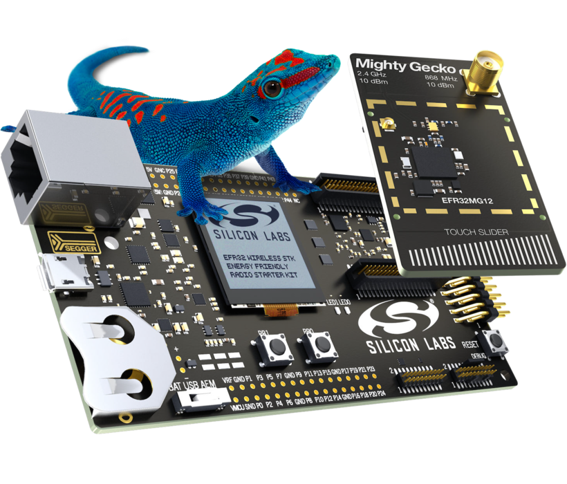 Das Mighty Gecko Wireless SoC Starter Kit beinhaltet ZigBee und Thread Software Stacks, Beispiel Codes und einen integrierten Debug Adapter. Mehrere Funk Boards ermöglichen dem Entwickler, ein Mesh-Netzwerk aufzubauen und die Mighty Gecko SoCs zu entdecken. Die Simplycitiy Studio Suite unterstützt Entwicklungen durch grafische Applikationsentwicklung, Mesh-Netzwerk-Debug, Tracing und visuelle Energie-Profiling.