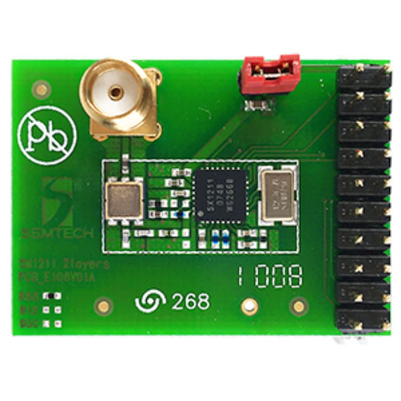 Dieses HF-Evaluierungsmodul ist mit SX1211 ausgestattet und für das 868-MHz-Frequenzband konfiguriert.
