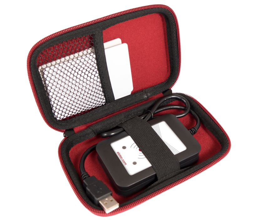 The compact TechTracer Lite tool identifies a variety of the world's most popular LF and HF RFID technologies. Connect the tool to a PC, open a text editor and you will see the information of the different RFID tags. The TechTracer Lite contains eight different RFID transponders.