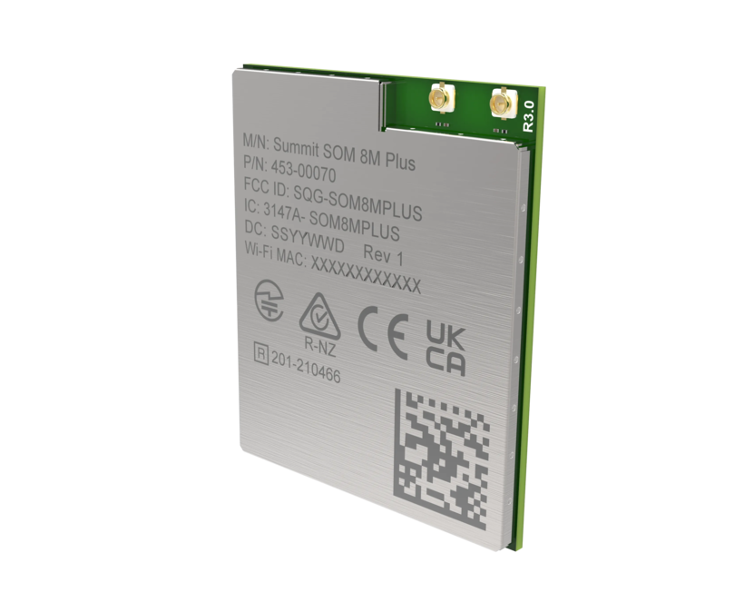 The Summit SOM 8M Plus is powered by NXP’s innovative i.MX 8M Plus processor and 88W8997 wireless silicon coupled with onboard NXP PMICs (PCA9450CHN and PM823UK), performance LPDDR4 RAM, and eMMC 5.1 storage. Combine this with the long-term support Summit Yocto Linux and Zephyr RTOS, secure enclave, and Summit Linux FIPS Core Crypto to offer a comprehensive hardware and software solution throughout your product’s lifecycle.