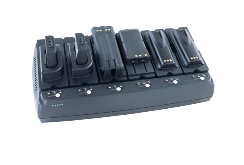 Dieses Ladegerät mit sechs Batterieschächten ist für den Desktop-Einsatz oder die Wandmontage geeignet und verfügt über ein internes 100-Watt- Universalnetzteil mit abnehmbarem Kabel.