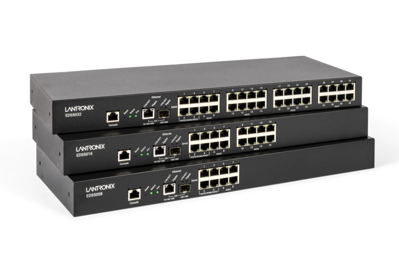 The EDS5000 Series is the next-generation, rack-mountable device server that supports 8, 16, and 32 serial ports to Ethernet (10/100/1000BASE-T or 100/1000 SFP) for easy remote access and management of virtually any serial-based equipment such as security equipment, medical devices, or POS terminals with data access speeds of up to 921.6 kbps baud rate.