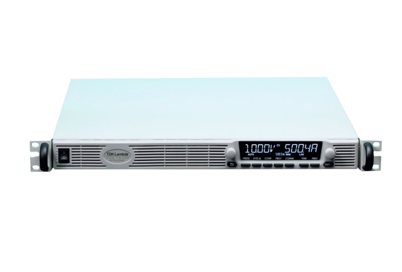 The successful GENESYS+™ laboratory power supply series in a 1U 19" rack housing is available in rated outputs of 1kW, 1.7kW, 2.7kW, 3.4kW, 5kW and 7.5kW and can deliver outputs of up to 7520W. With the lowest weight, the devices offer the highest power density currently available in a 1U rack (<5kg for 1.7kW, <7.5kg for 5kW, <8.5kg for 7.5kW).