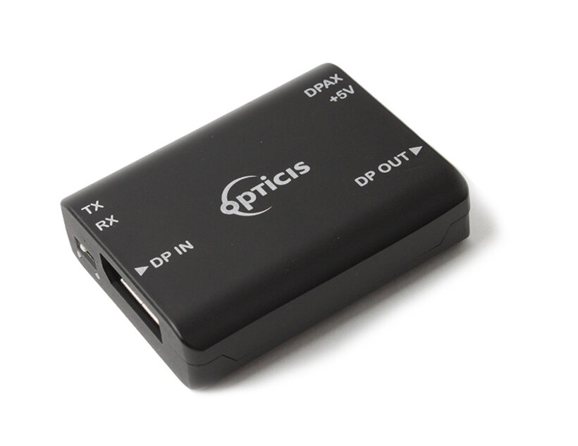 Der neue Displayport 1.2 Active Signal Repeater „DPAX“ ist ein Data Recovery Repeater zur Übertragung eines Displayport-Videosignals bis zu einer kombinierten Länge von 18m über ein Premium-Displayport-Kabel. DPAX erfüllt die Displayport 1.2-Standards und unterstützt UHD bis zu 4096x2160 bei 60Hz mit AUX-Kanal und Multi Stream Transport. DPAX wurde speziell entwickelt für die Kombination mit anderen Opticis Glasfaser-DP-Extendern wie DPFX-100, DPFX-200 und M1-5000.