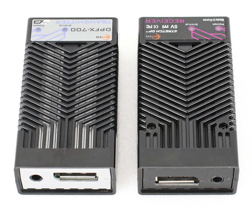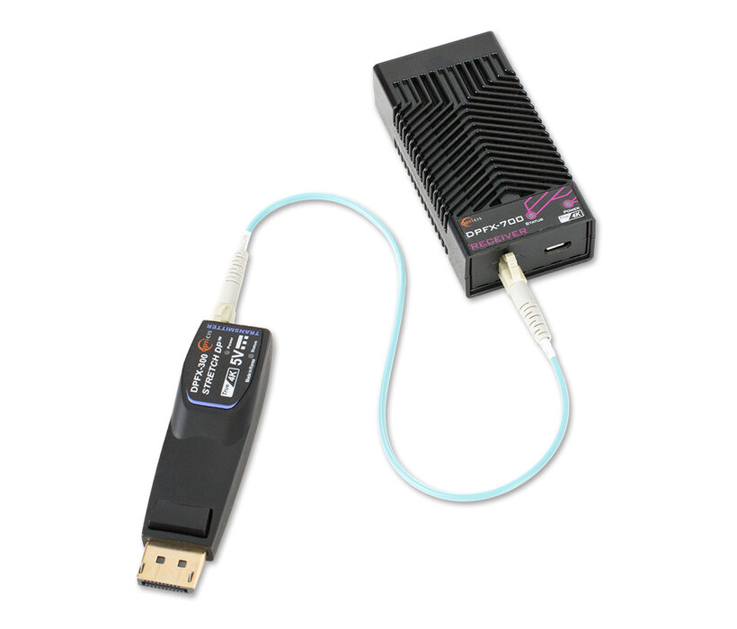 DisplayPort 1.2 one fiber optical detachable extender with copper extension, DPFX-700-TR, extends DisplayPort 1.2 signal up to 200m and transmits 4K UHD (4096x2160) at 60Hz over one LC multi-mode fiber(OM3). Cutting-edge technology of Opticis reduces limits in installation by providing an option for longer copper extension.