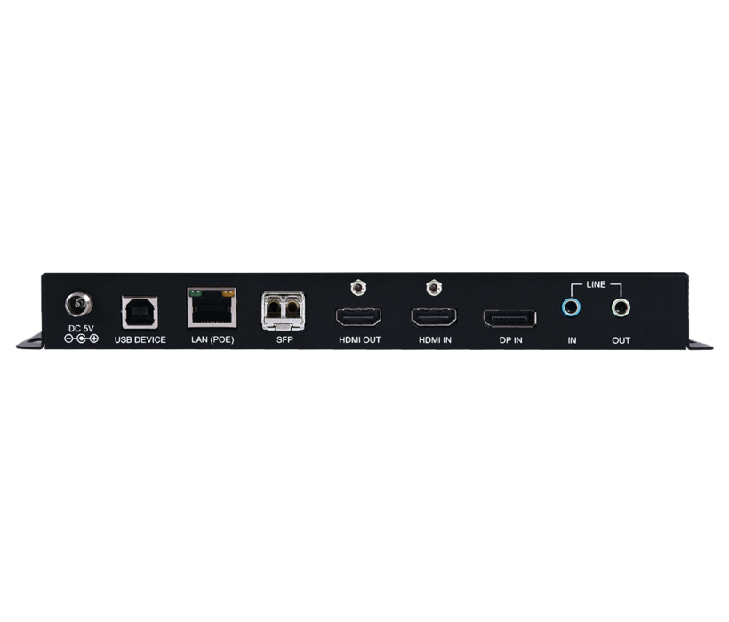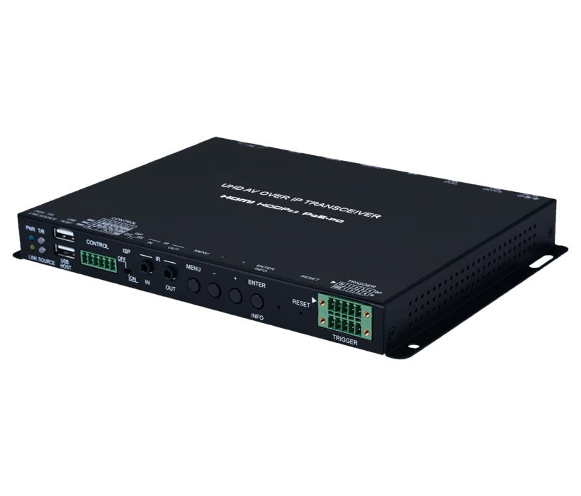 The Dual-Format 4K UHD AV over IP Transceiver are innovation design of integrate Transmitter and Receiver into one unit; user could able to switch unit into Transmitter or receiver by the needs. The Transceiver supports the transmission of Ultra High-Definition signals (up to 4K@30Hz, 4:4:4 or 4K@60Hz, 4:2:0) with audio and USB up to 100 meters on a single cable. The transmission distance can be further extended (up to 100 meters per segment) by using gigabit network switches, or using SFP fi ber cable to extend (up to 550m~2km, depends on the Fiber module that been used), allowing the user to cascade the system without signal loss or introducing delay. It is also possible to have the Transmitter operate in multicast mode, allowing you to send a single AV signal to a large number of Receivers within the same local network.