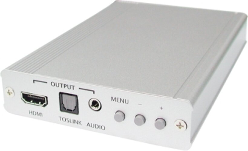 CP-259H ist eine kompakte und vielseitige HDMI-HDMI Scaler Box. Sie nimmt HDMI-Eingangssignale mit einem separaten Toslink oder analogem Audio entgegen und skaliert diese auf HDMI-Ausgangssignale (mit einigen wählbaren Auflösungen) mit zusätzlichem Toslink und analoger Audioausgabe. Die CP-259H verfügt über ein umfangreiches OSD-Menü, mit dem die Benutzer unter einer Vielzahl an Ausgangsauflösungen wählen und die beste Bildqualität einstellen können. Sie ist ideal zur Verwendung zwischen inkompatiblen HDMI-Quellen und -Anzeigegeräten geeignet, indem sie die Bildauflösung und Bildwiederholrate der HDMI-Quelle an die nativen des HDMI-Displays anpasst.